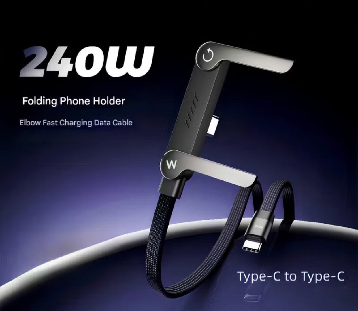 ที่ชาร์จสายชาร์จแบบล่องหนที่มาพร้อมกับขาตั้ง รองรับการชาร์จเร็ว 240w สายชาร์จ 2-in-1 & ขาตั้งโทรศัพท์สําหรับเล่นเกม สํานักงาน เดินทางในรถยนต์ รองรับกับ iPhone Samsung สายชาร์จแบบ Type-C สีดํา