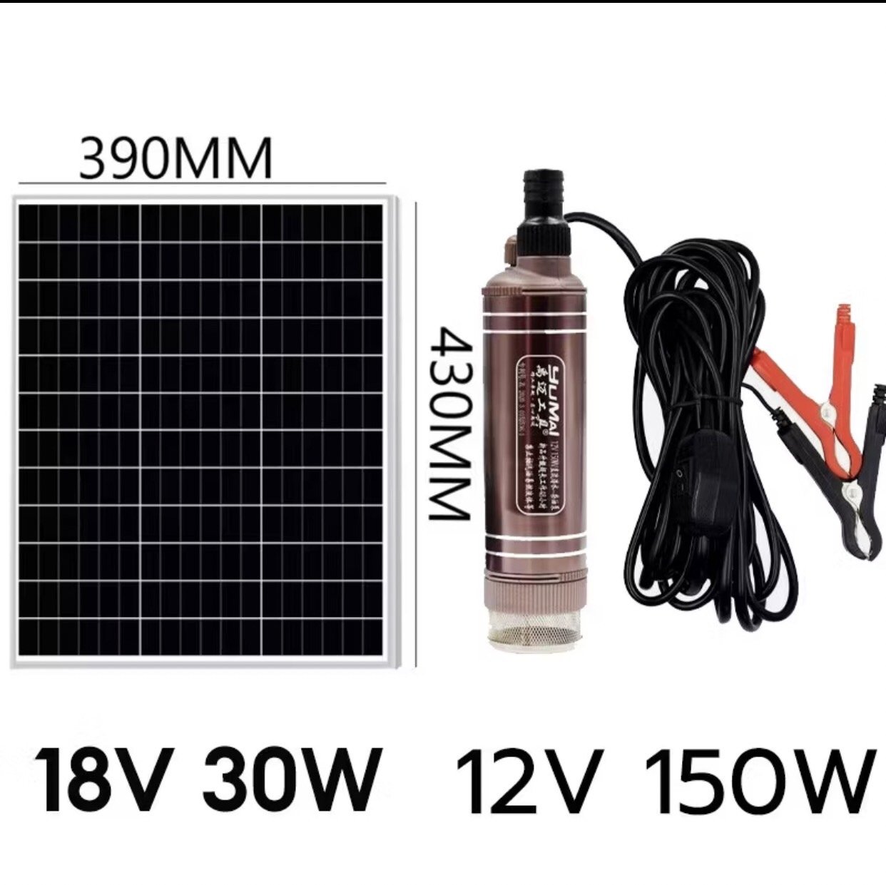 ปั้มน้ำdc12v สแตนเลส ปั๊มจุ่ม 1นิ้ว12V 300W ไดโว่ เจ้าพระยา แรงดันสู แบตเตอรี่ มอเตอร์ทองแดงแท้ 100% ไดร์โว่ดูดน้ ปั๊ม D(12V150W+Solar panels)