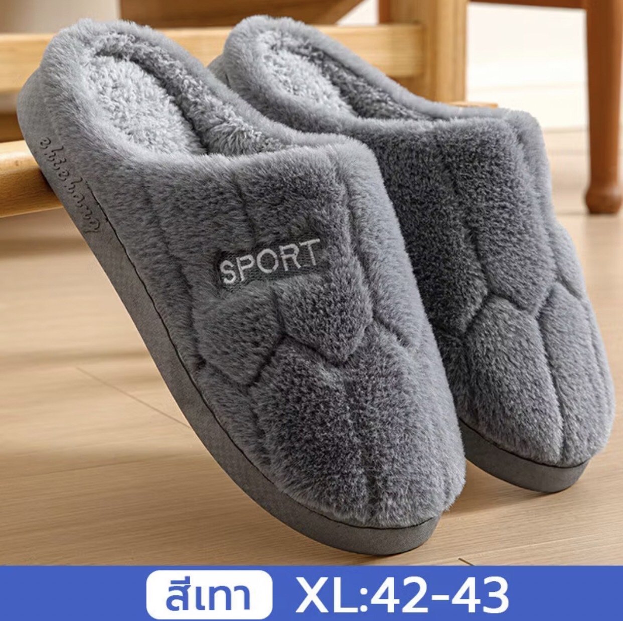 รองเท้าแตะผ้าฝ้าย รองเท้าใส่ในบ้าน กันลื่น สลิปเปอร์ สีพื้น สําหรับผู้ชาย 307A-L : สีเทา 42-43