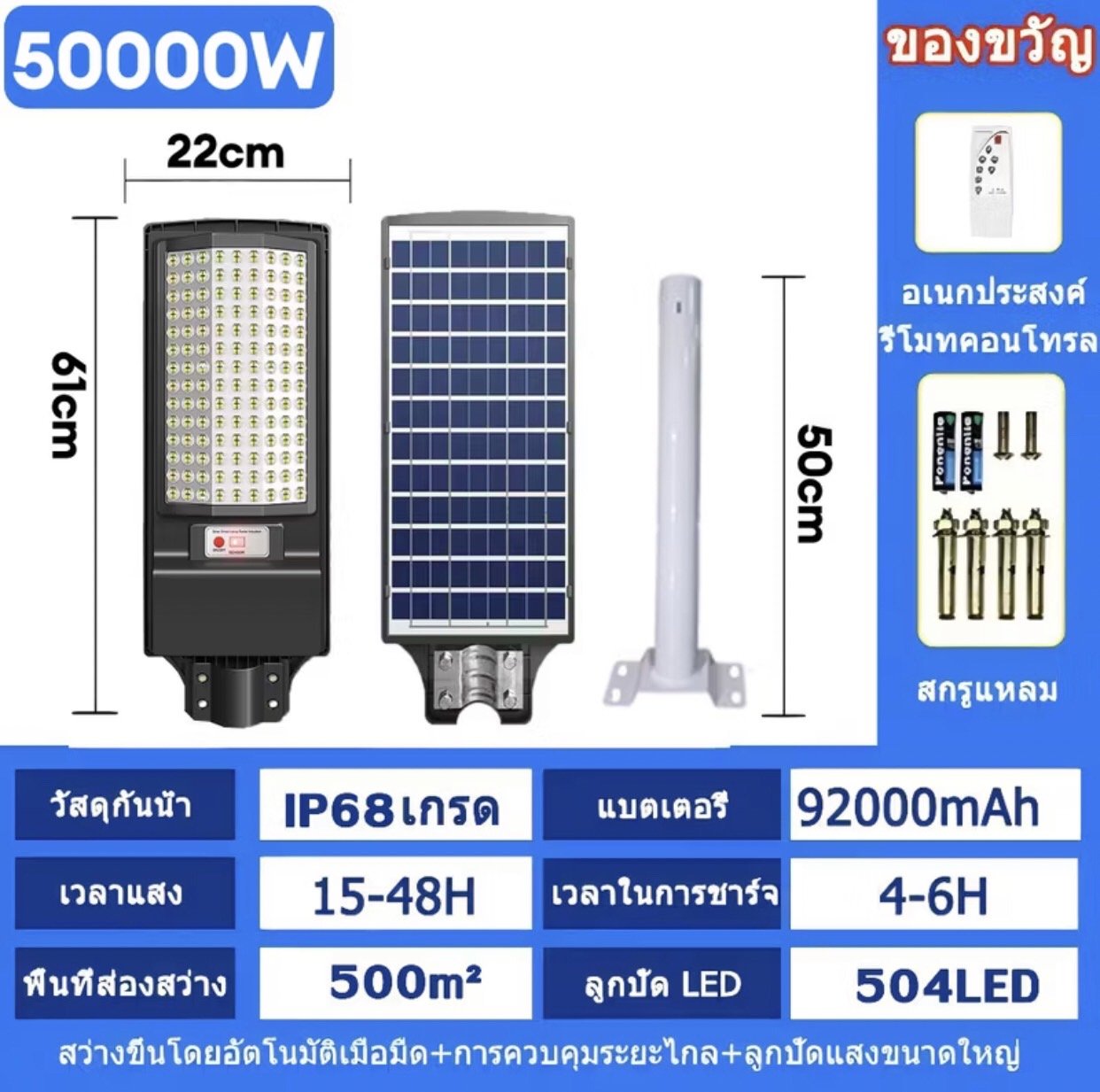 ????(หลังจากได้รับสินค้าแล้วควรติดตั้งและนำไปตากแดดเพื่อชาร์จก่อนแล้วจึงทดสอบ)
